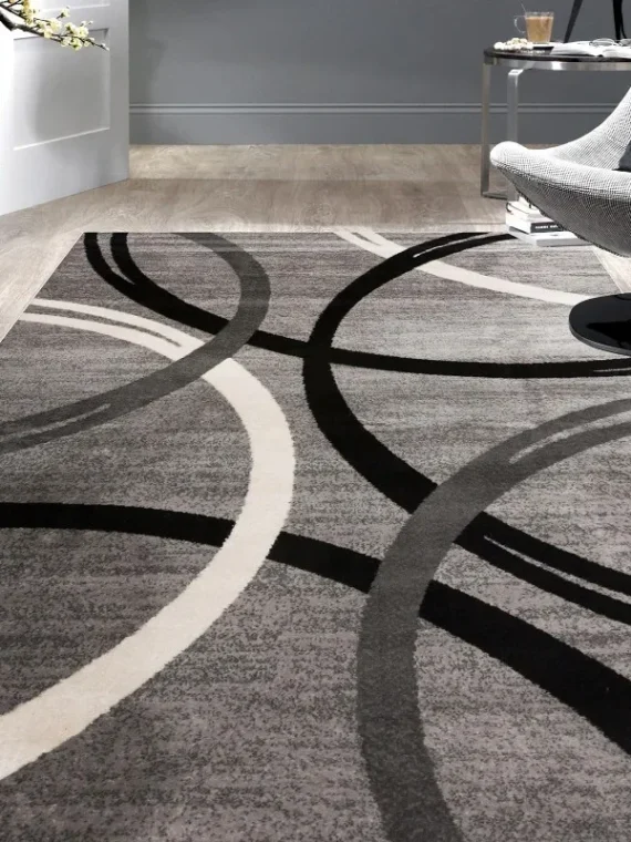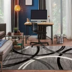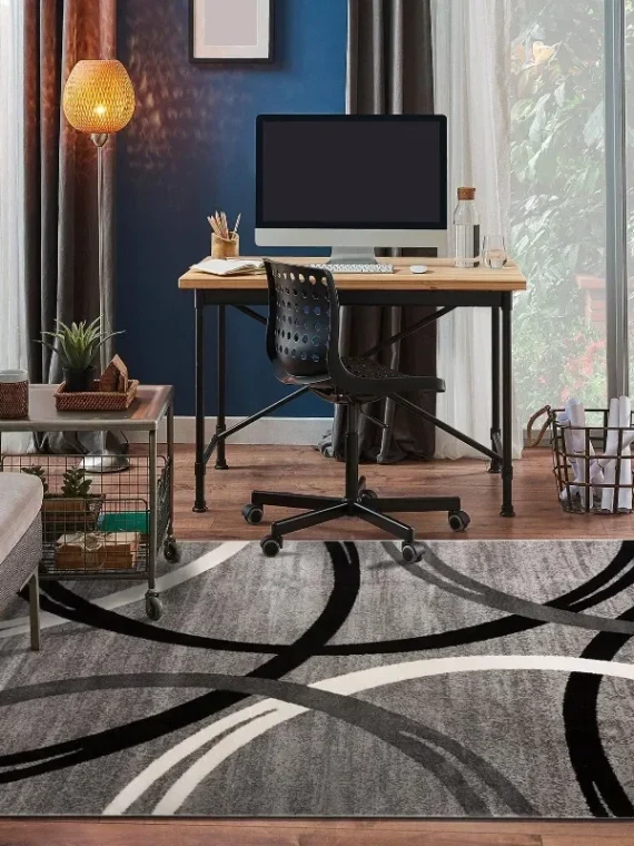 • Dynamic Wavy Circles Design: The rug boasts an artistic pattern with fluid wavy circles, available in blue, brown, gray, red, black, and yellow to complement any room’s palette.