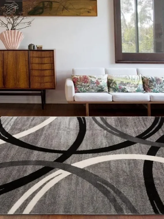 Modern Wavy Circles Design Area Rug 5’3″ X 7’3″, Home Textile
